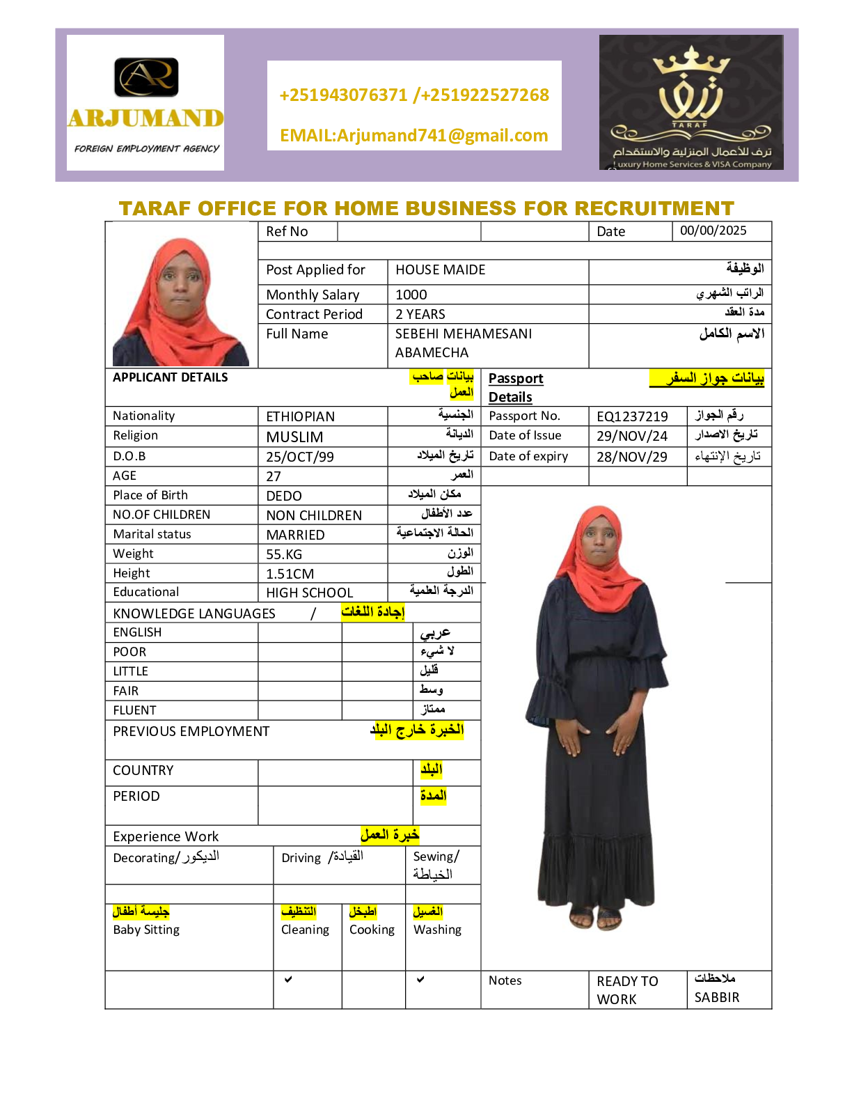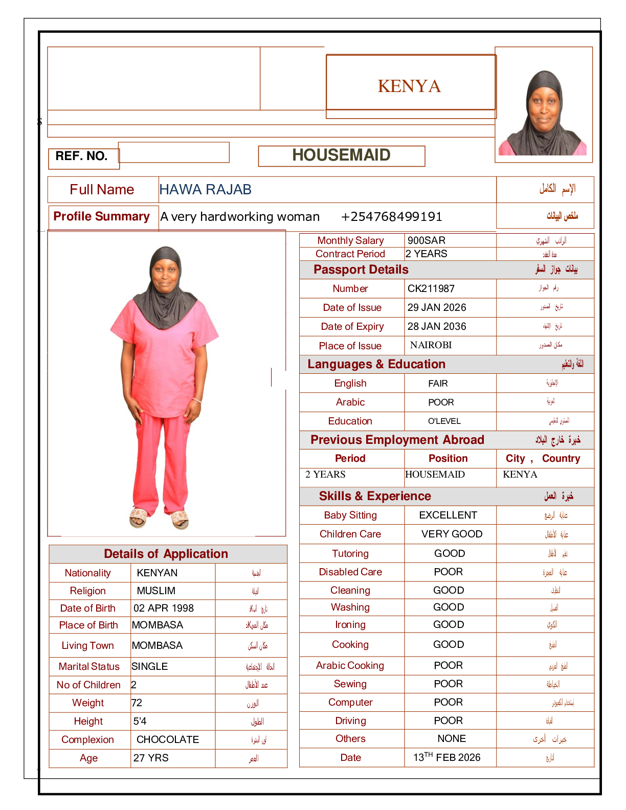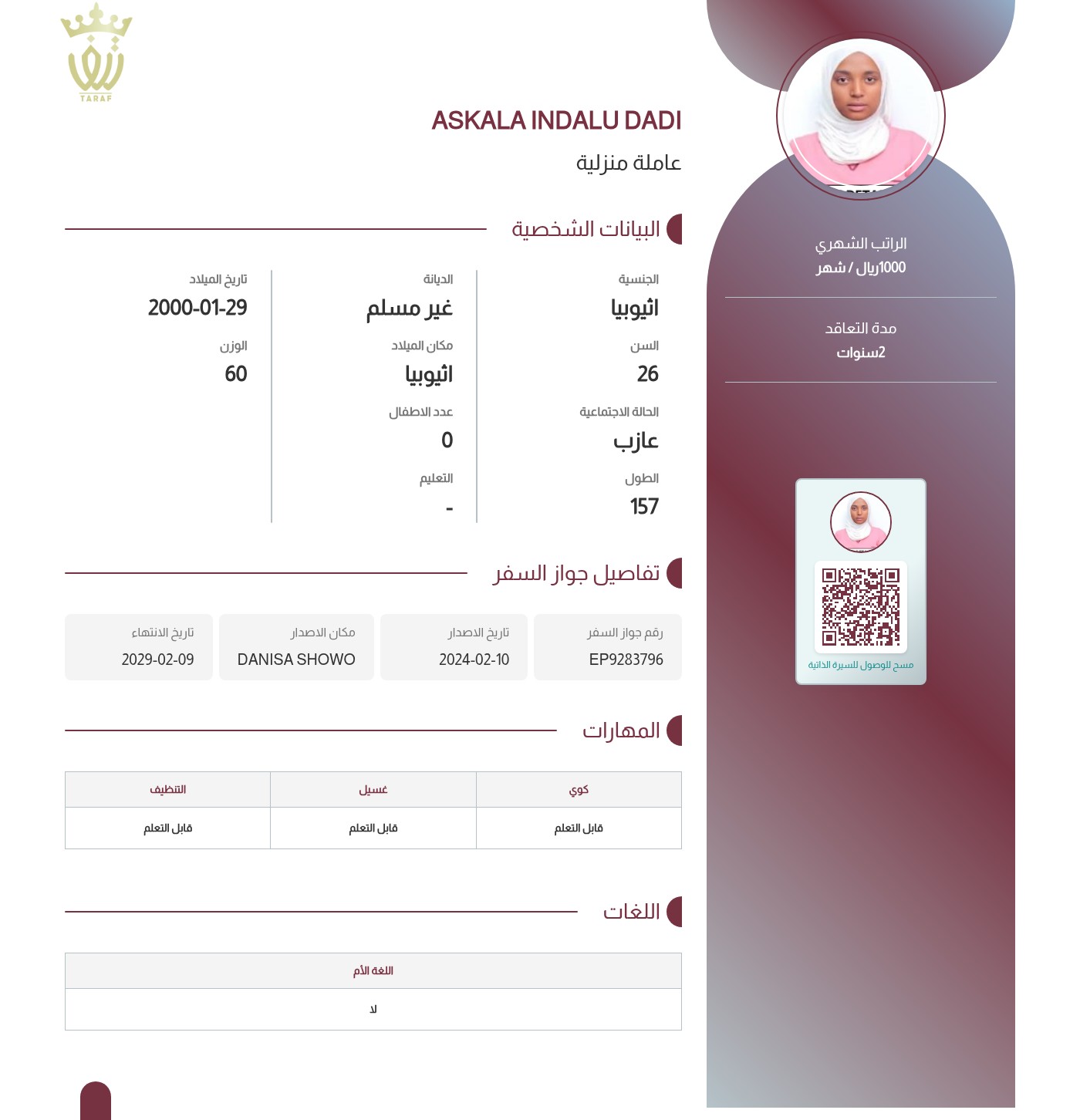 عاملة منزلية