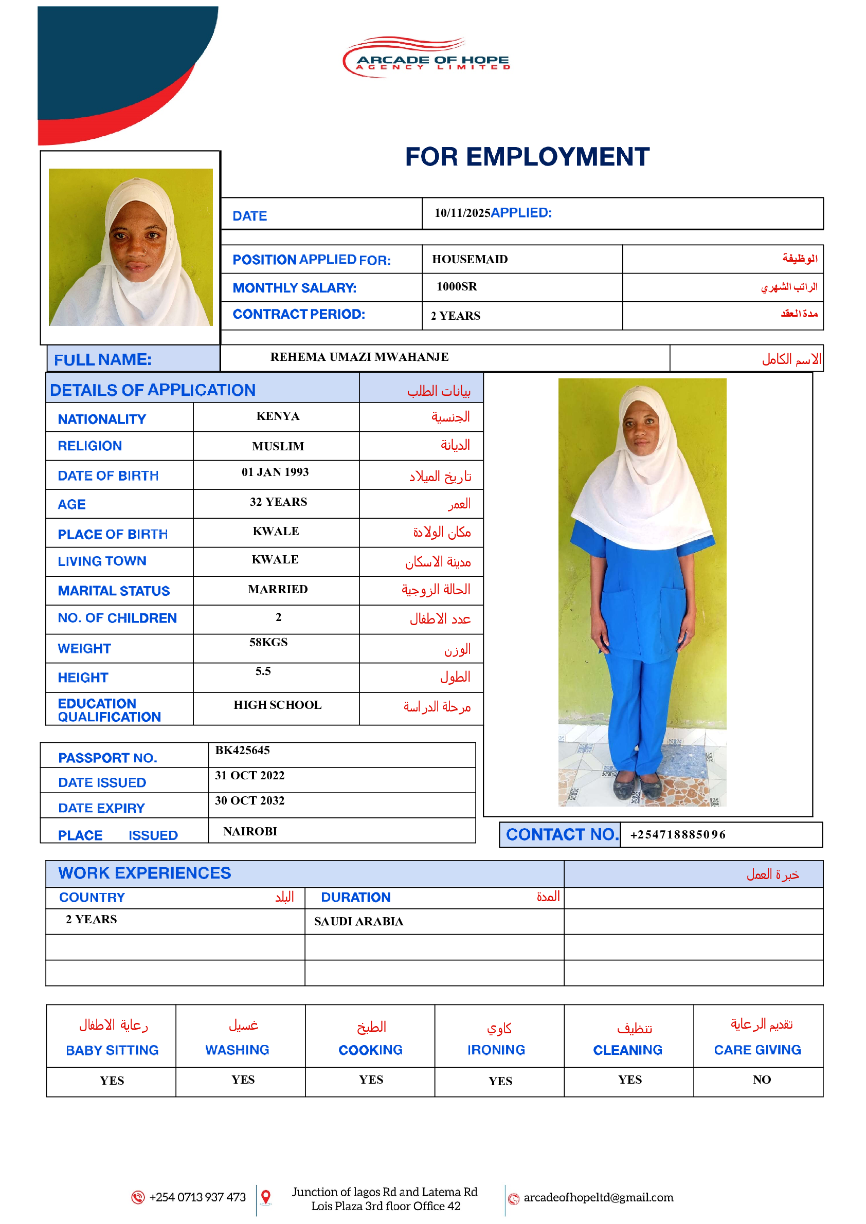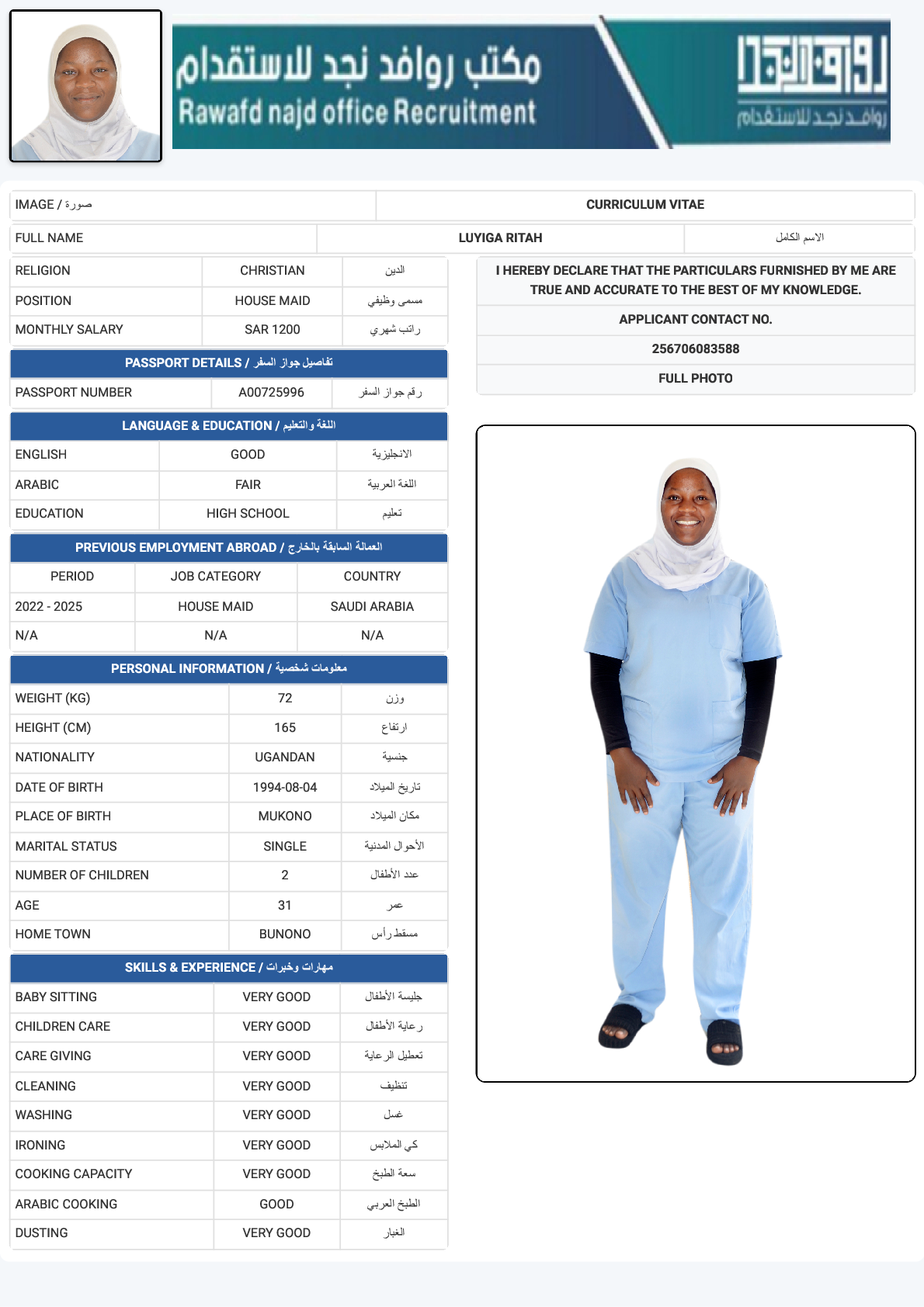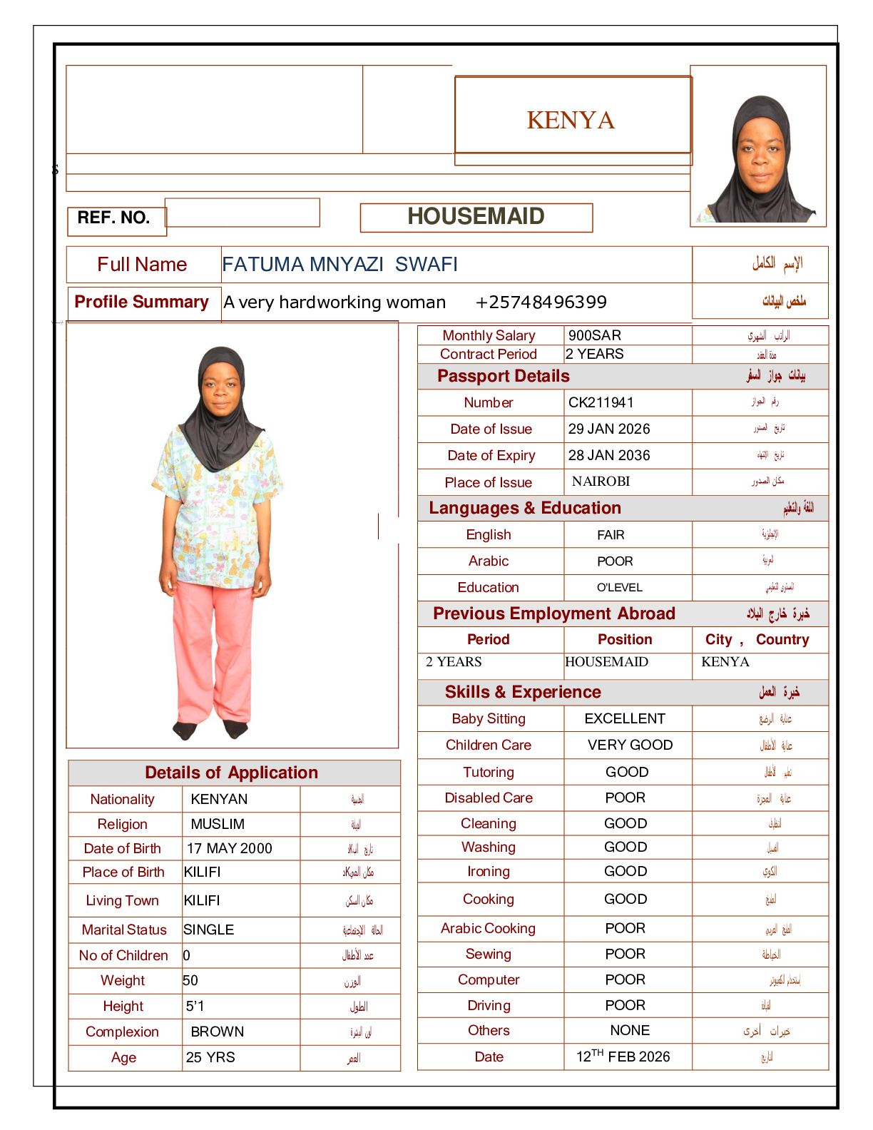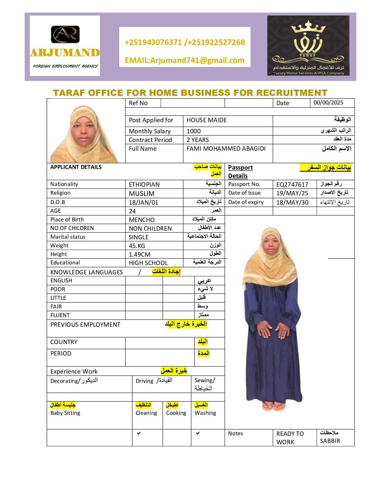 عاملة منزلية