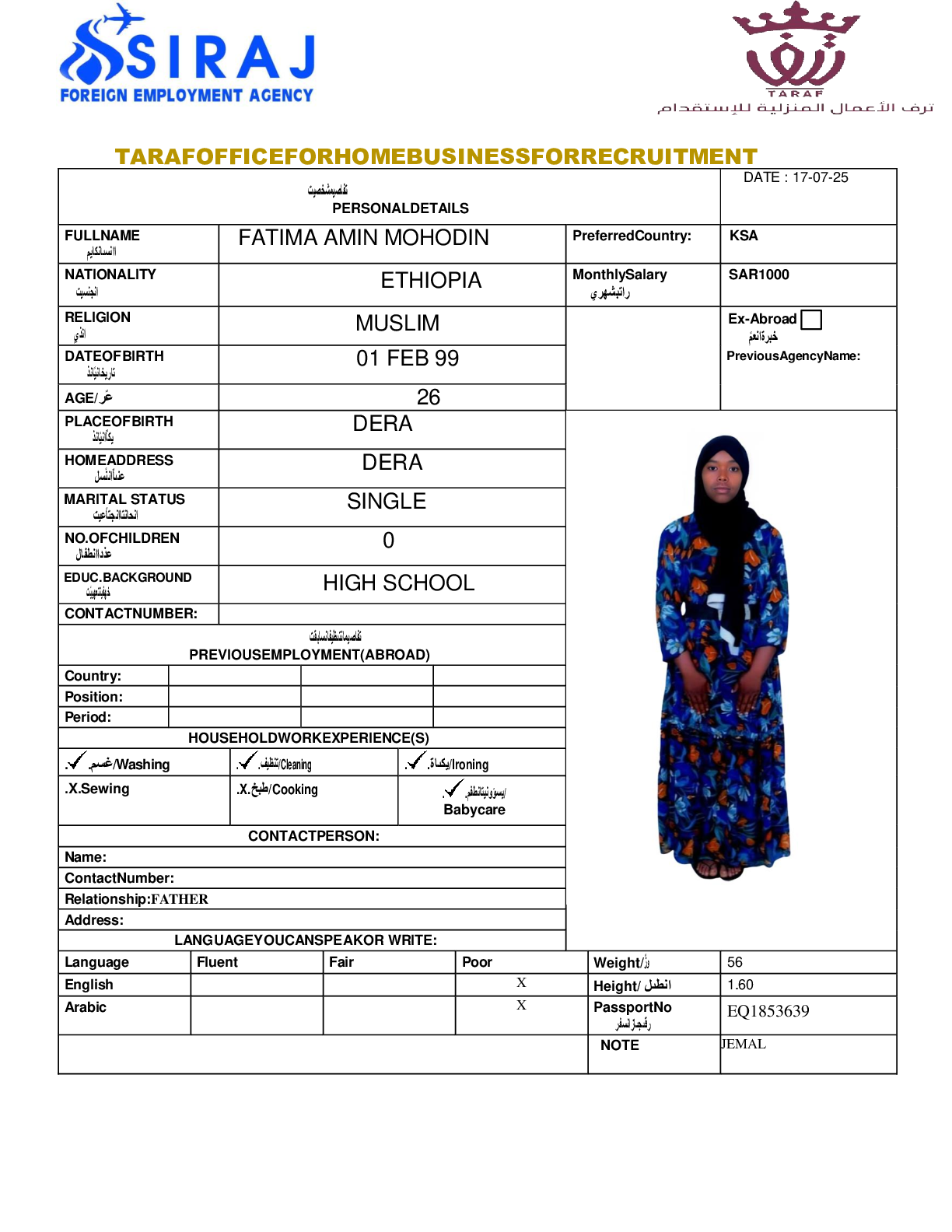 رقم العامل: 3834