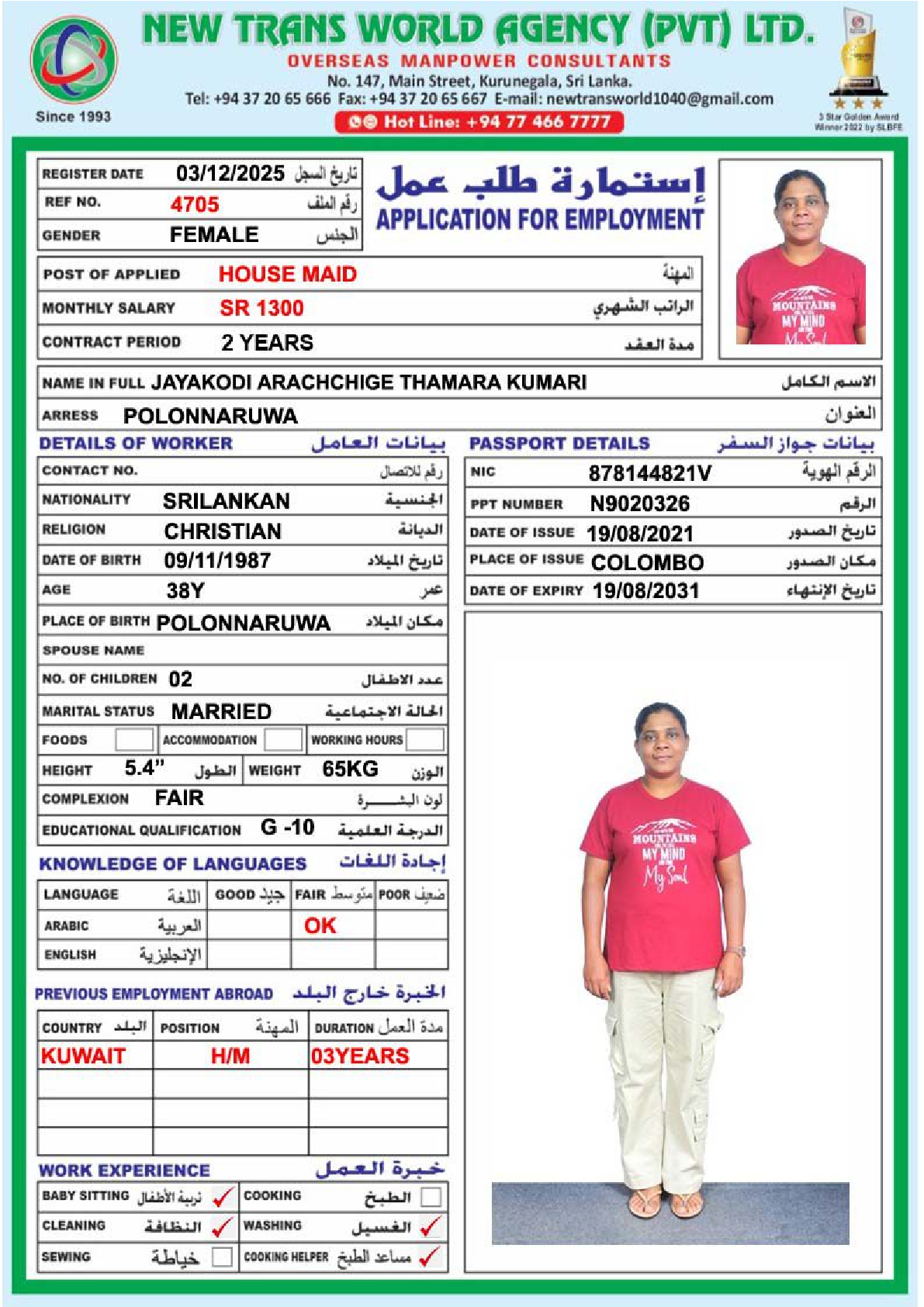رقم العامل: 3833