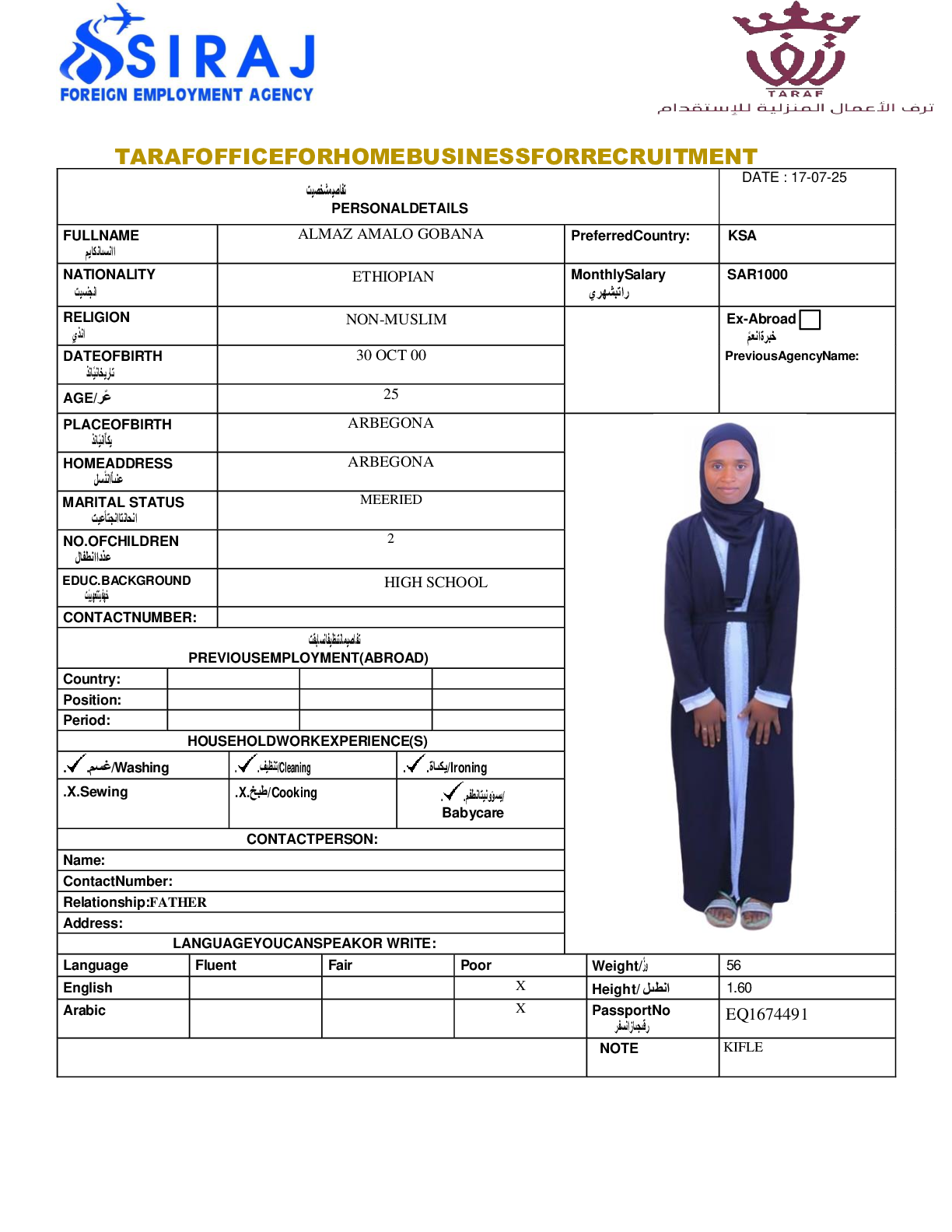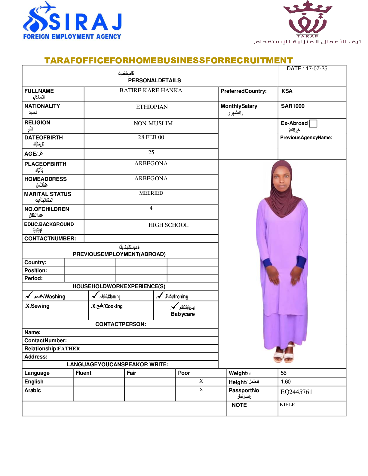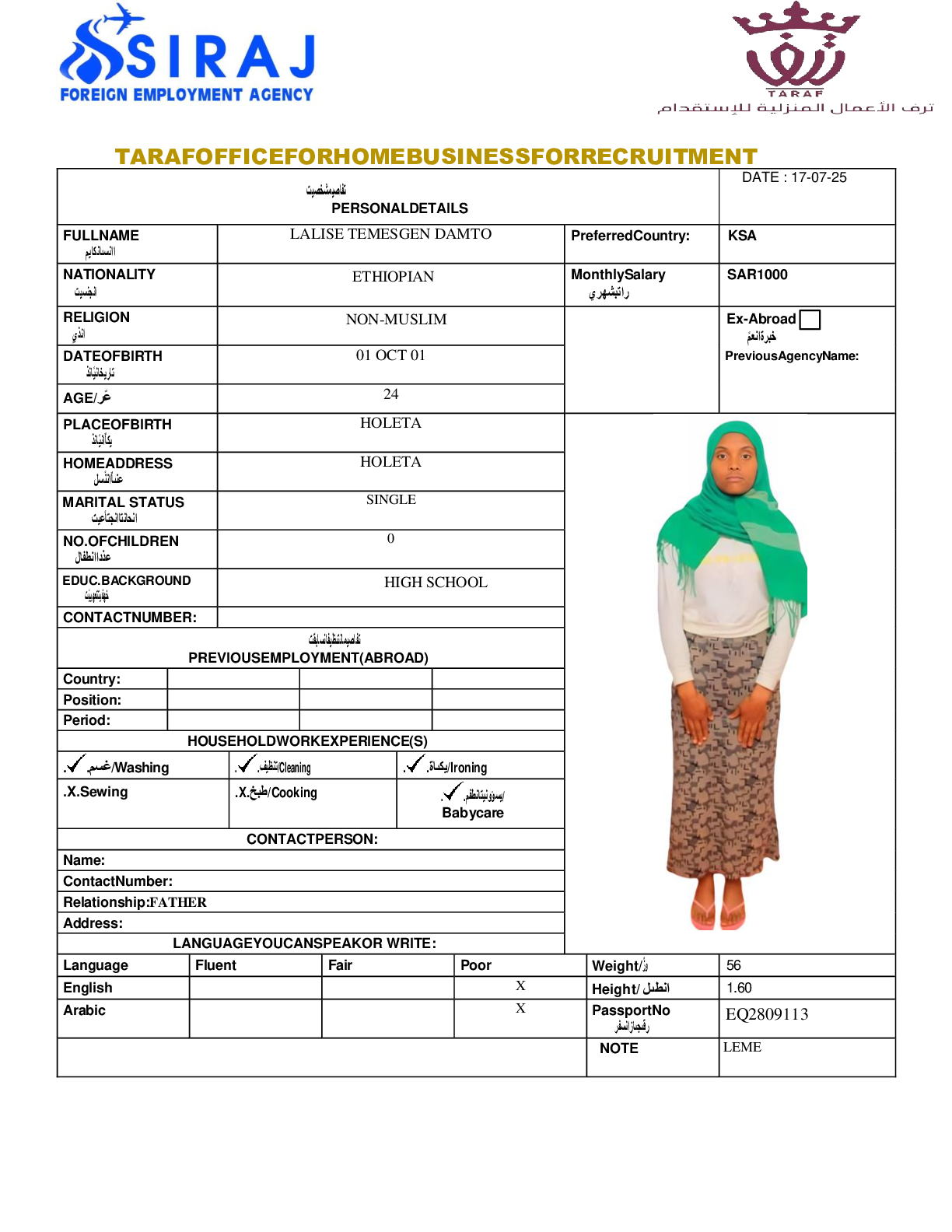 عاملة منزلية