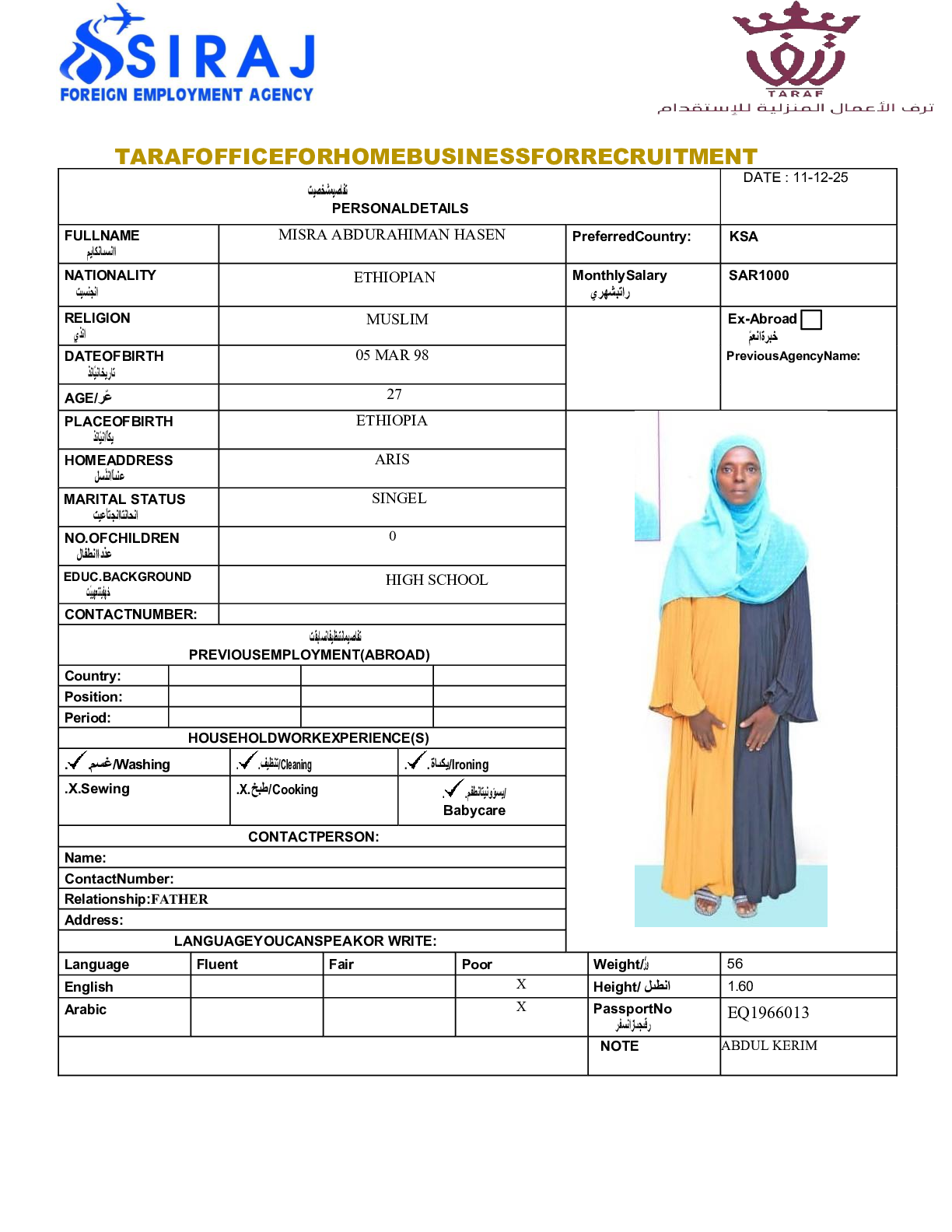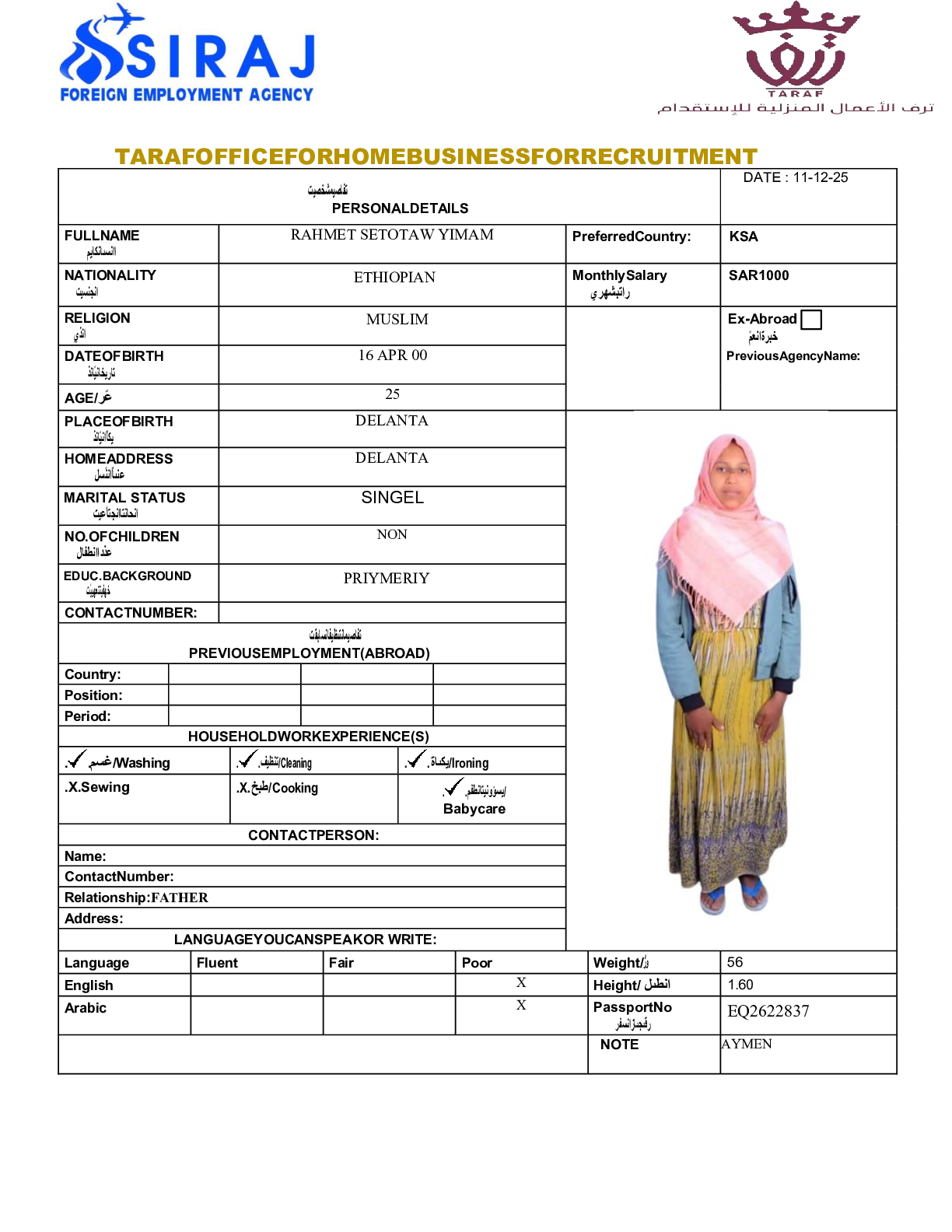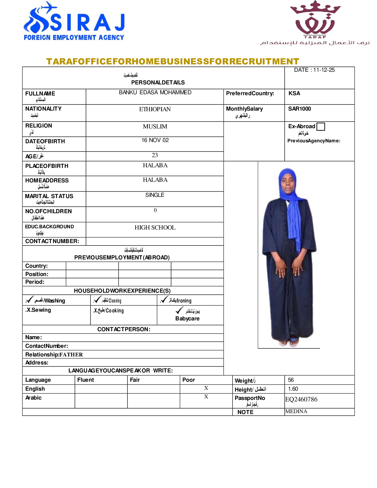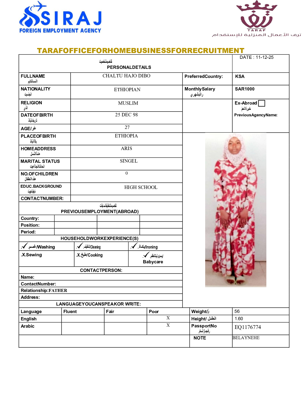 عاملة منزلية
