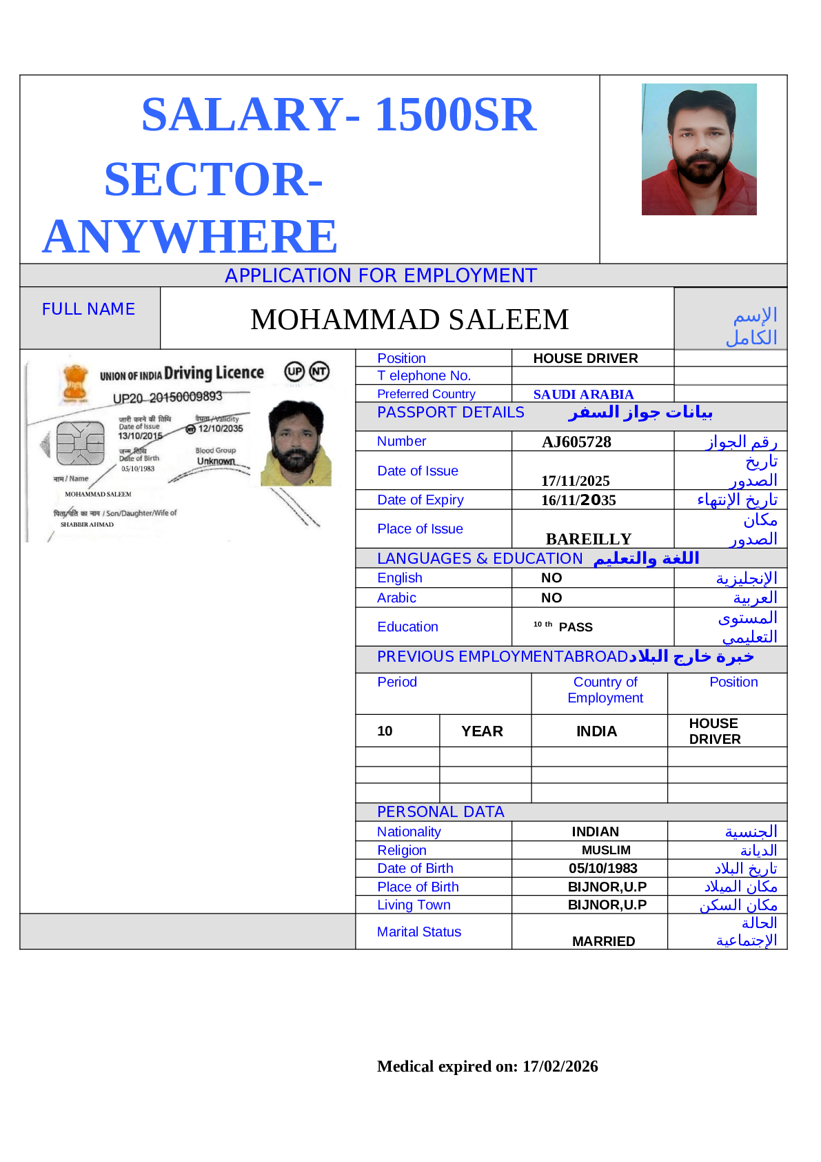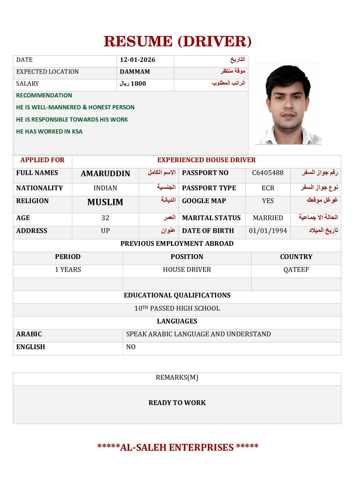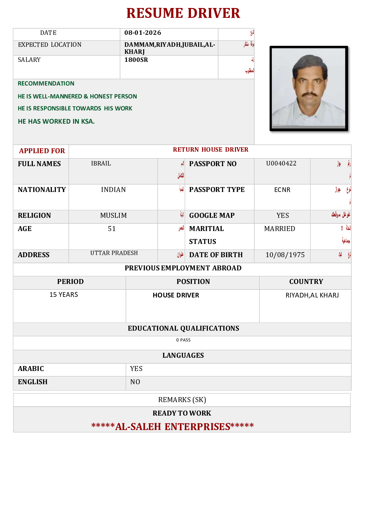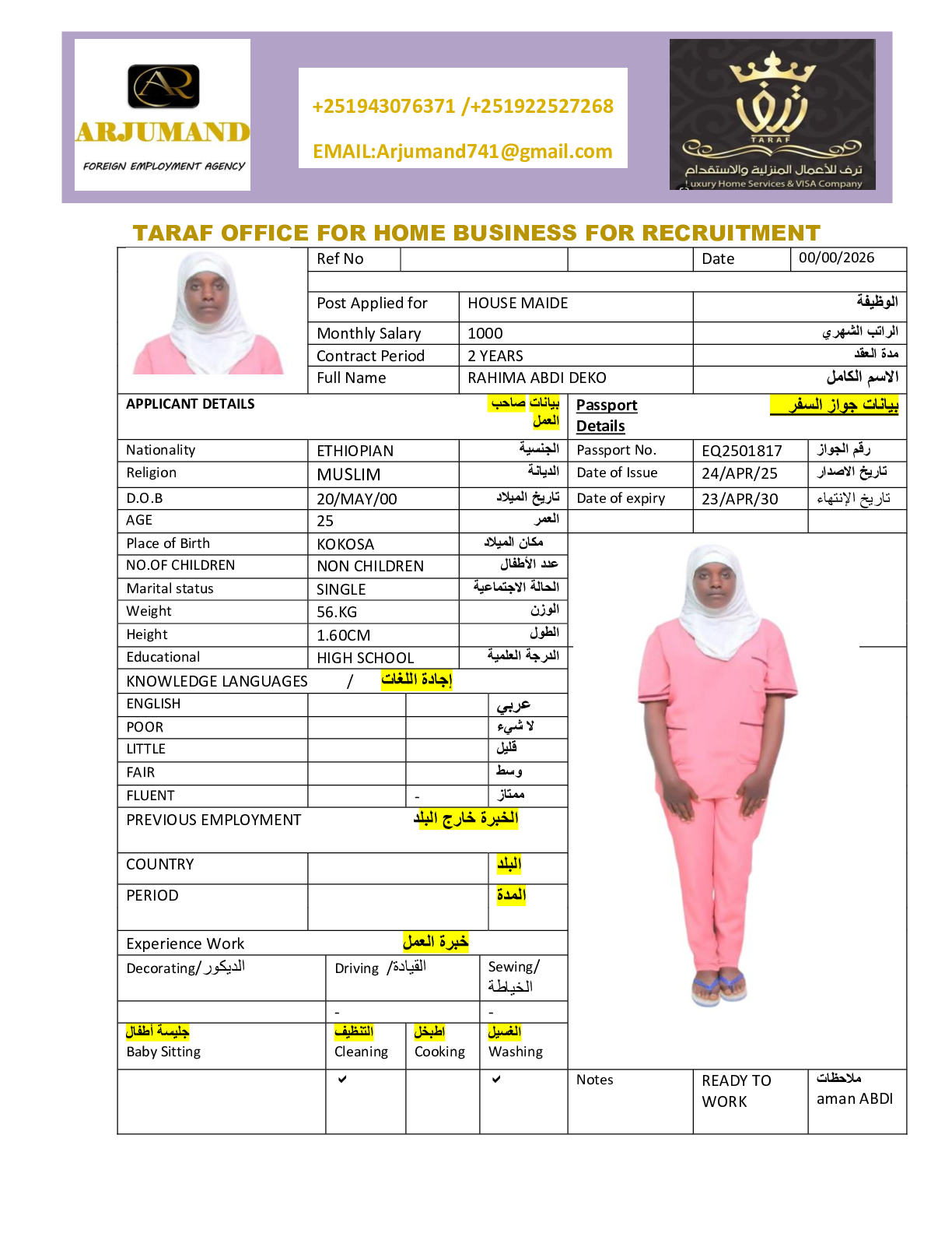 • سعر الاستقدام :