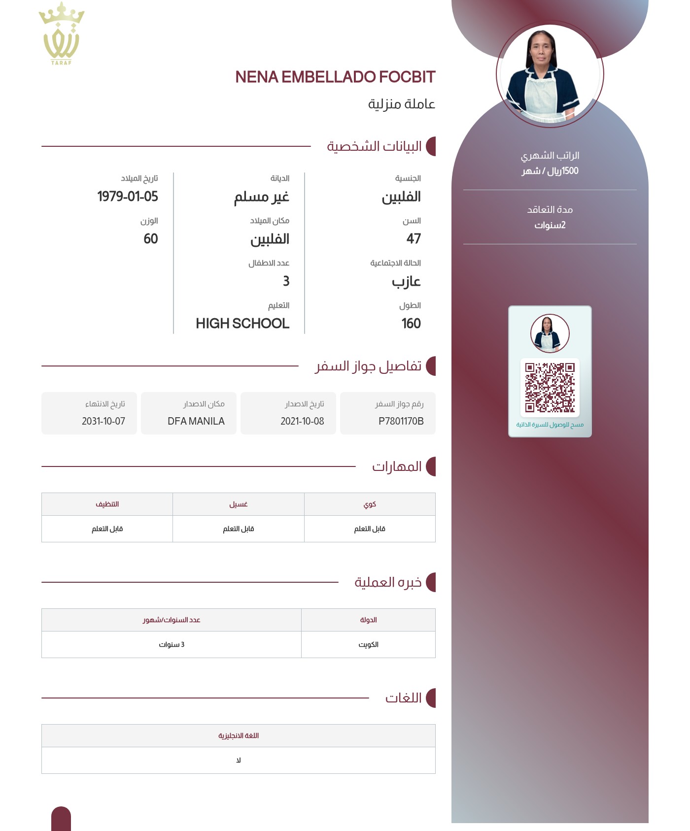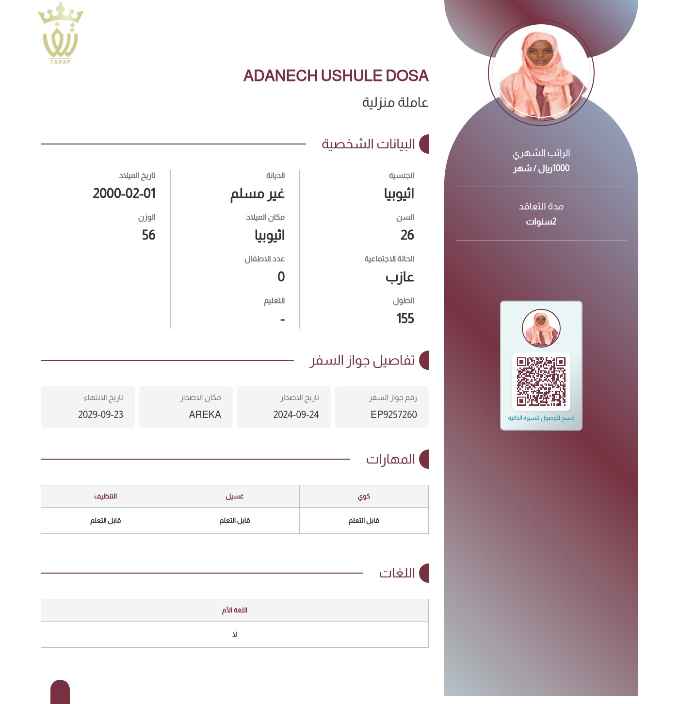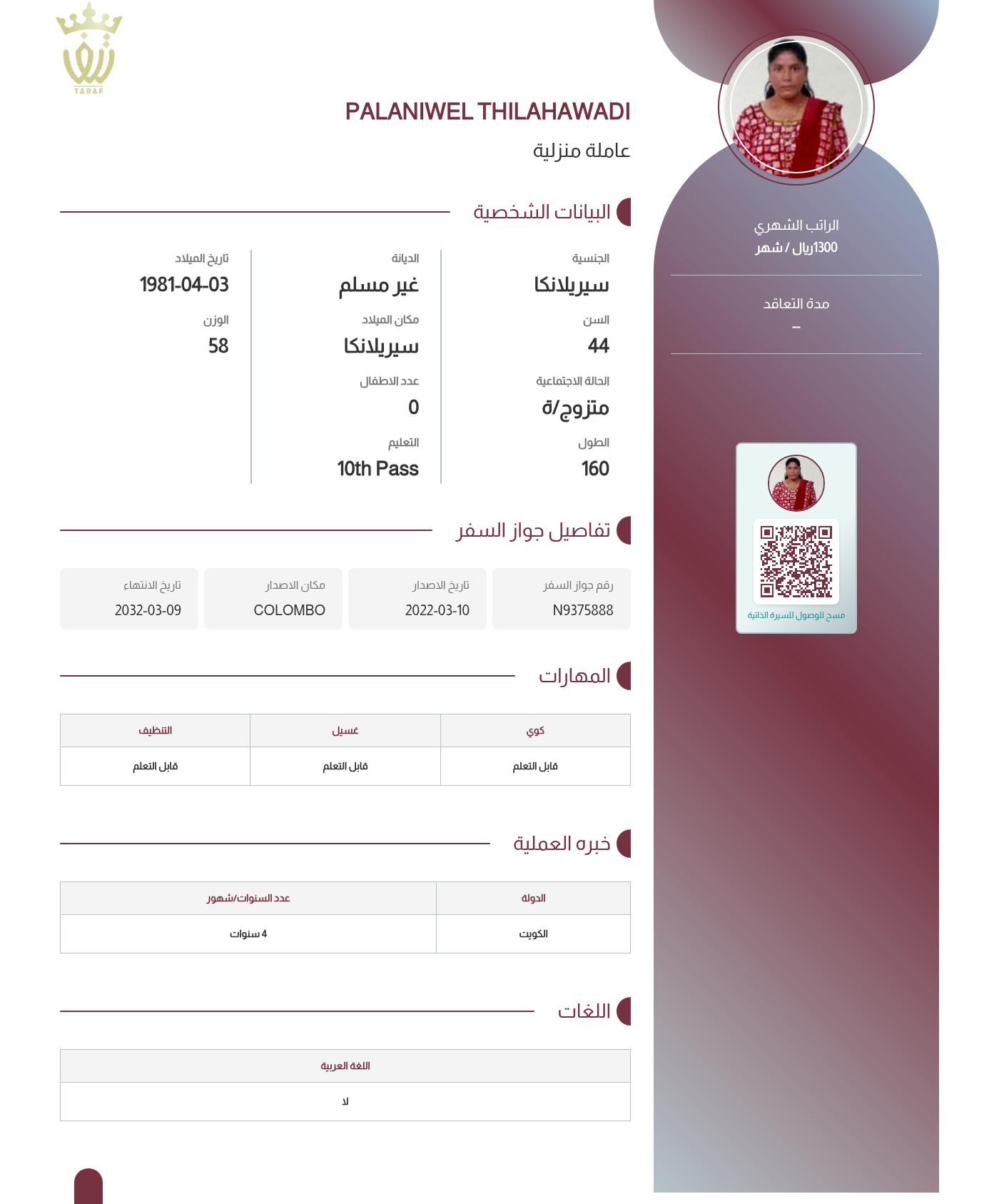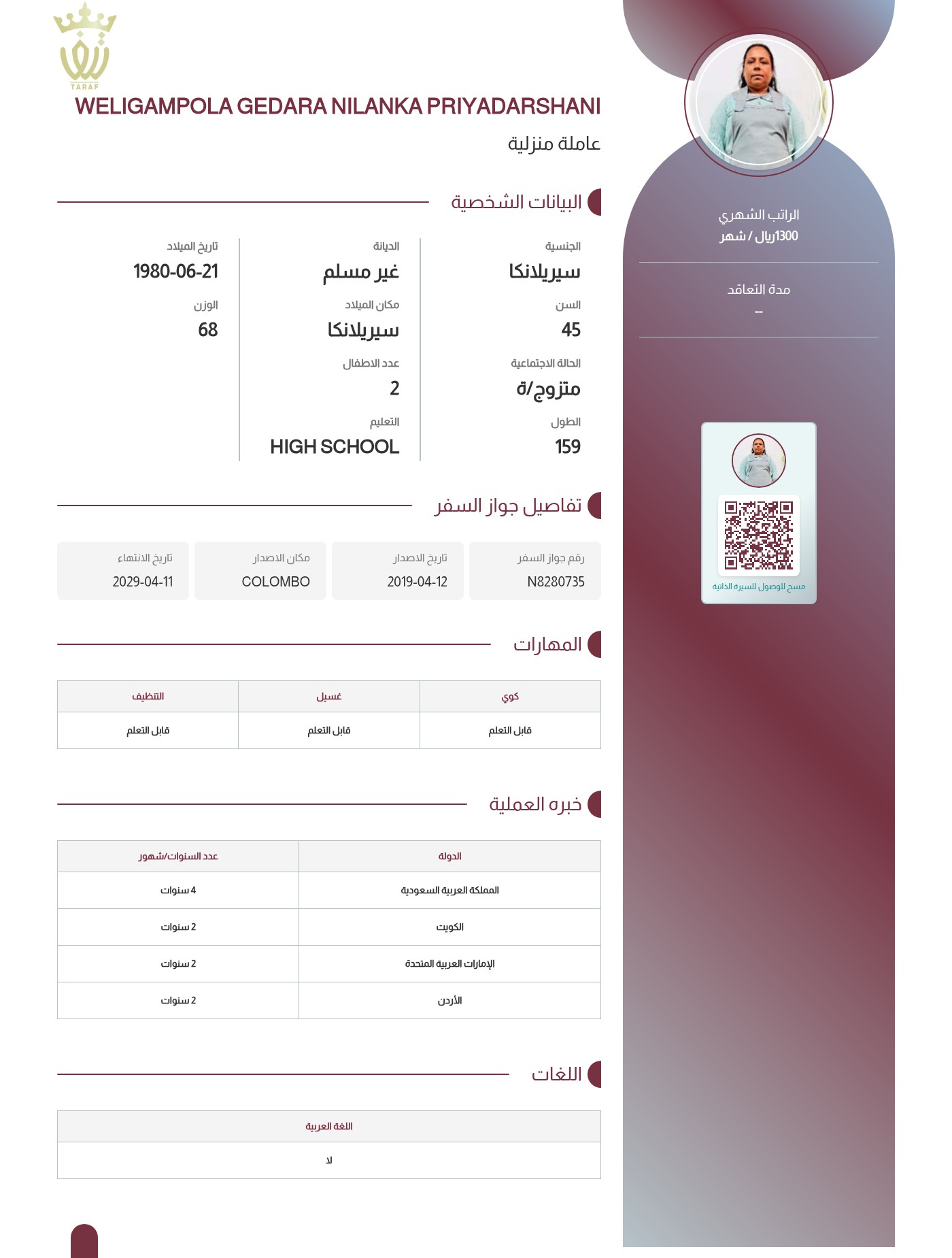 عاملة منزلية