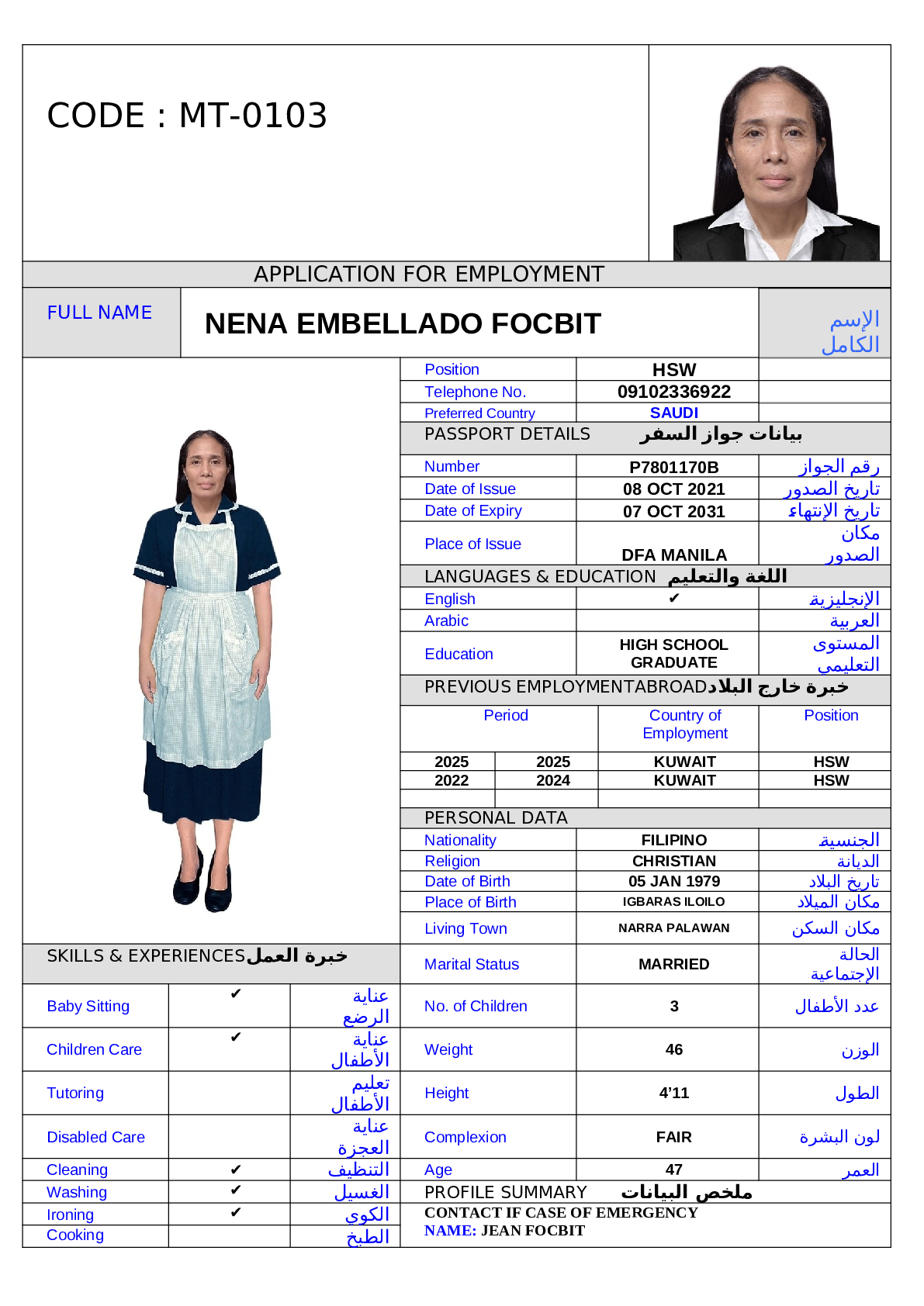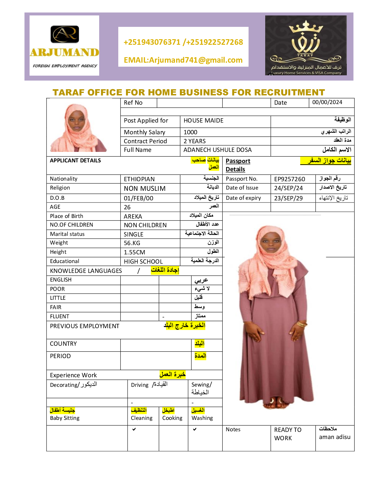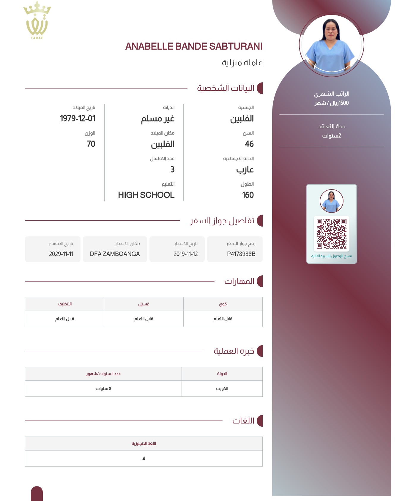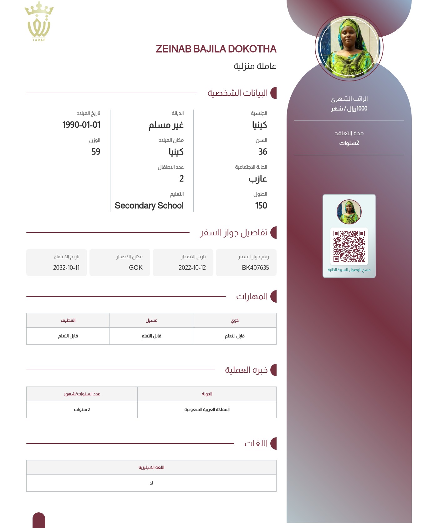 عاملة منزلية